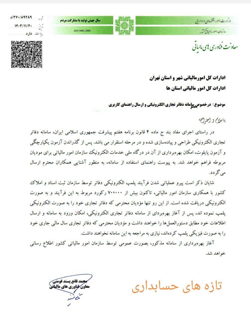 در خصوص سامانه دفاتر تجاری الکترونیکی و راهنمای کاربری – بخشنامه 270/89289/د مورخ 1403/11/30