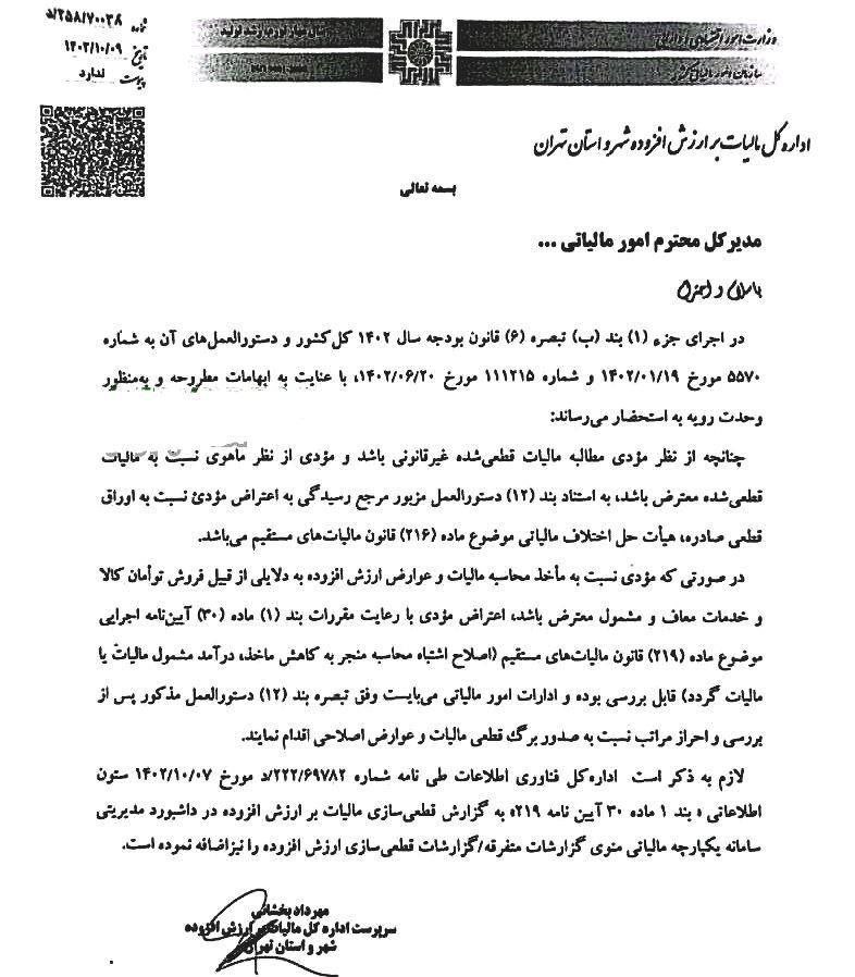 نحوه اعتراض به اوراق قطعی مالیاتی – بخشنامه شماره 258/70028/د  مورخ 1402/10/09