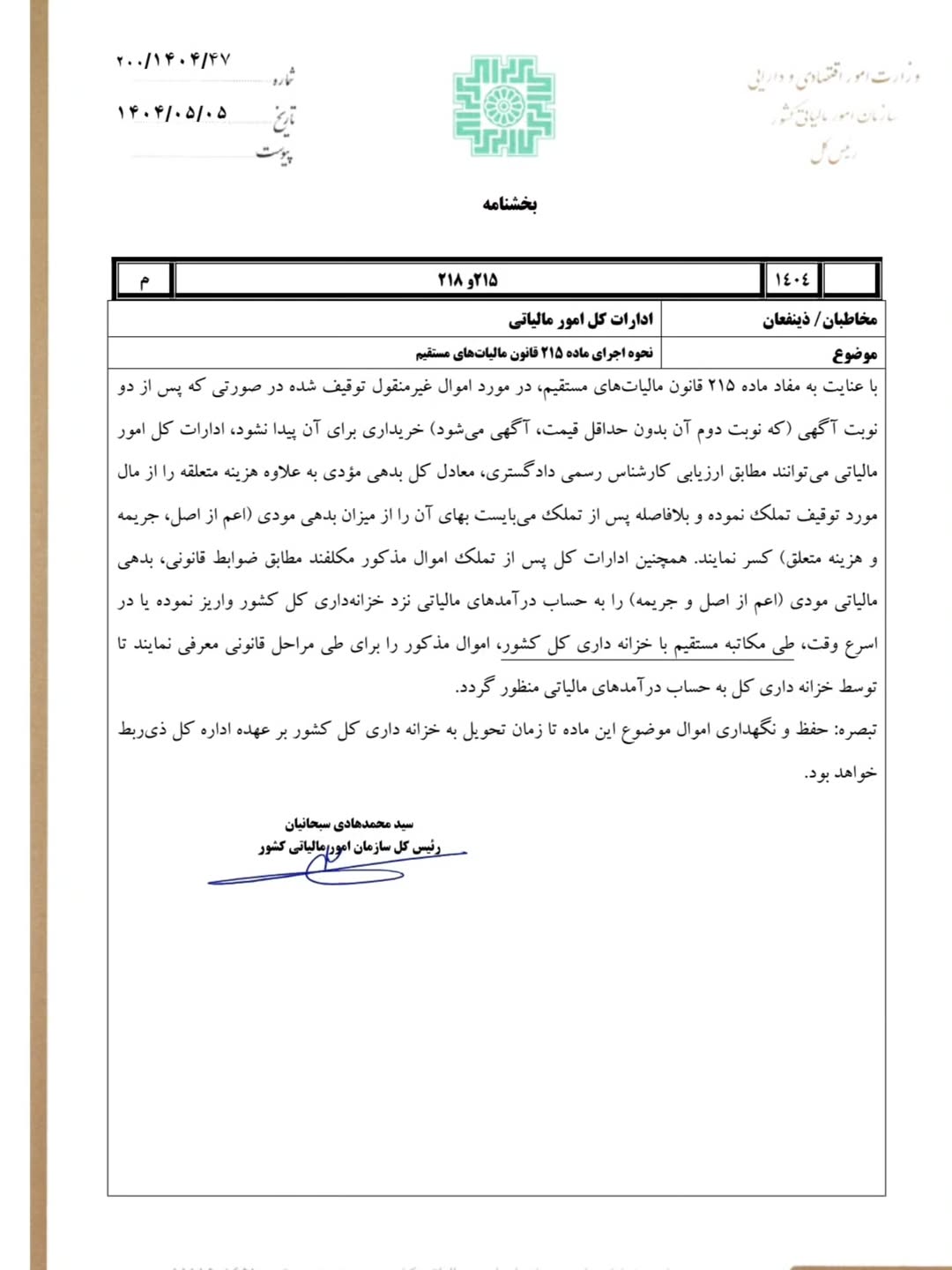 نحوه اجرای ماده ۲۱۵ قانون مالیات‌های مستقیم – بخشنامه شماره ۲۰۰٫۱۴۰۴٫۴۷  مورخ ۱۴۰۴٫۰۵٫۰۵